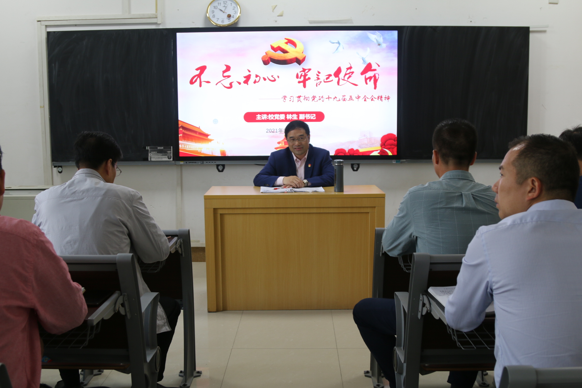部分师生党员上了一堂题为《不忘初心 牢记使命---学习贯彻党的十九届五中全会精神》的党课。